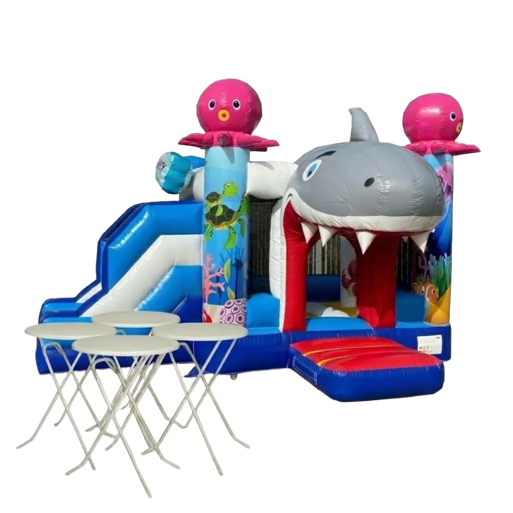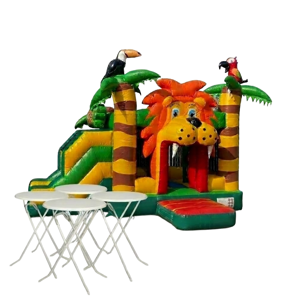 - 1x Springkussen Multiplay: Een uitgebreid springkussen met vrolijke obstakels en een glijbaan. (Keuze uit diverse thema’s zoals Krokodil, Brandweer of Jungle).